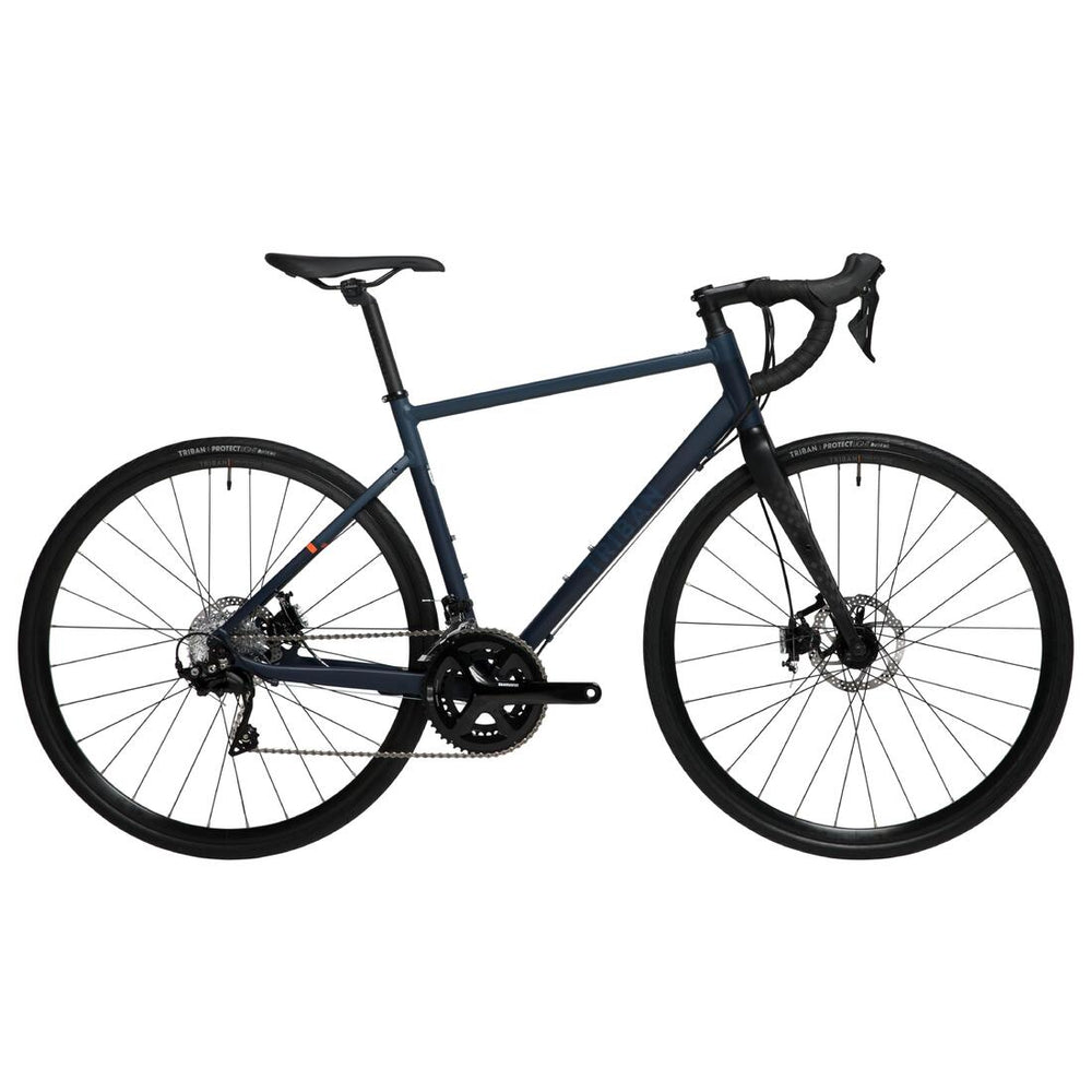 Nuevo marco Triban Evo de aluminio 6061 T6, geometría confort con sloping adaptado Peso: 1830 g en talla M Marco sólido y polivalente: posibilidad de instalar un tapabarros y una bolsa Compatibilidad con neumáticos de sección hasta 36 mm