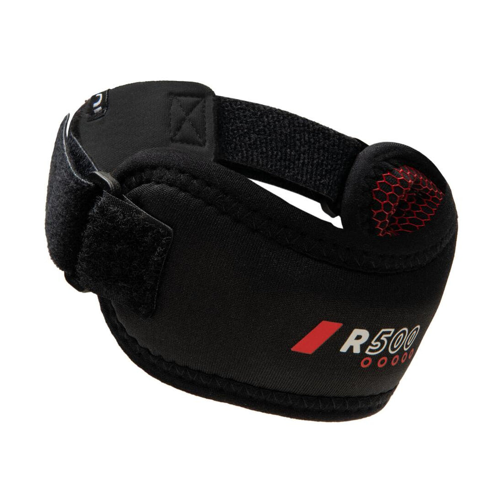 Venda de sujeción de rodilla concebida para volver a hacer deporte tras una tendinitis rotuliana.