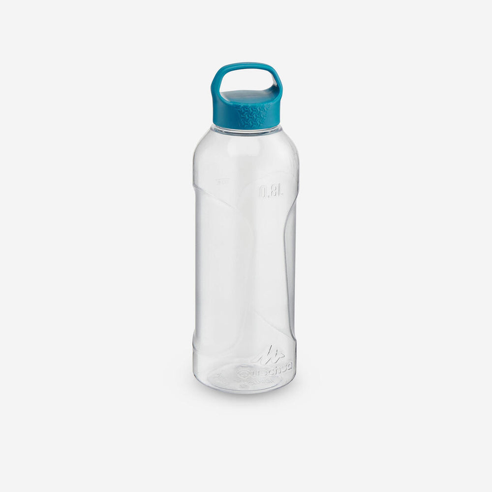Botella simple y liviana, tapa rosca con apertura de una vuelta. Transparente y sólida, de plástico Ecozen® (0,8 L).