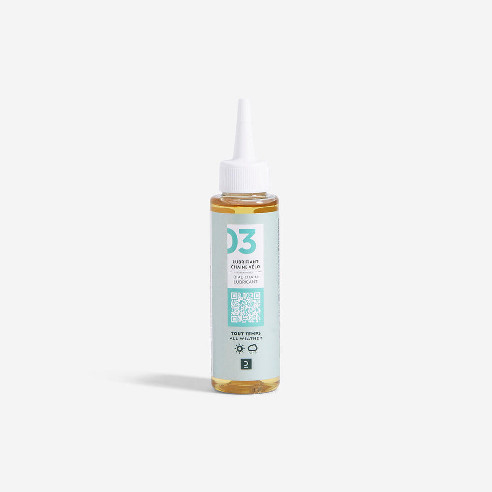 Aplica el aceite para cualquier clima en la cadena, para protegerla y eliminar los ruidos parásitos durante tus salidas en bicicleta.