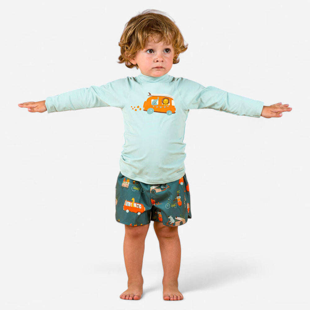 Con esta polera anti-UV de manga larga los bebés están protegidos del sol. ¡En la piscina o en la playa, podrán jugar tranquilos!