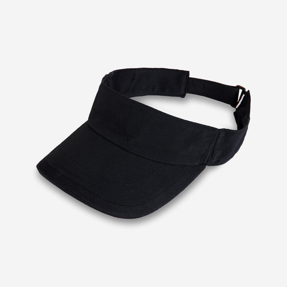Esta visera de tenis Artengo TV 100 tiene una forma y un tamaño estudiados para jugar al tenis, no dificulta la visibilidad (especialmente al levantar la cabeza para realizar un remate). Una tira de refuerzo de material transpirable y acolchado rodea la cabeza para bloquear el sudor y evitar que penetre en los ojos. Finalmente, una correa de velcro en la parte posterior permite un ajuste fácil de la talla y mejora la comodidad y la sujeción.