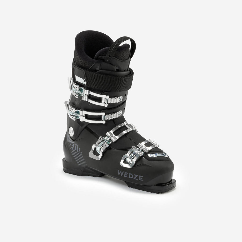Con los 4 ganchos de aluminio y sus correas, estas botas de ski 500 son perfectas para los esquiadores en perfeccionamiento que buscan unas botas cómodas con buena sujeción.