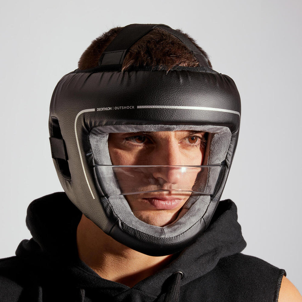 Para que los practicantes quieran descubrir la satisfacción del boxeo con sparring, nuestro equipo de concepción diseñaron un casco que protege totalmente la cara. "Con un casco tradicional, la nariz, la boca, los ojos y parte de los pómulos quedan muy expuestos" explica Julien, jefe de producto de Outshock. Gracias a la barra de protección que atraviesa la cara a la altura de la nariz, ¡no recibirás ningún golpe!