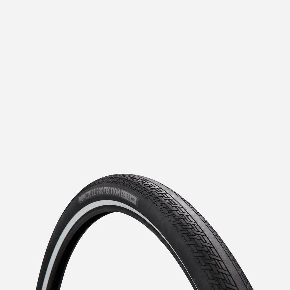 Neumático reforzado adaptado a las bicis eléctricas, que ofrece un rendimiento excelente y facilita los trayectos en todas las distancias. La banda protectora integral limita el riesgo de pinchazos.