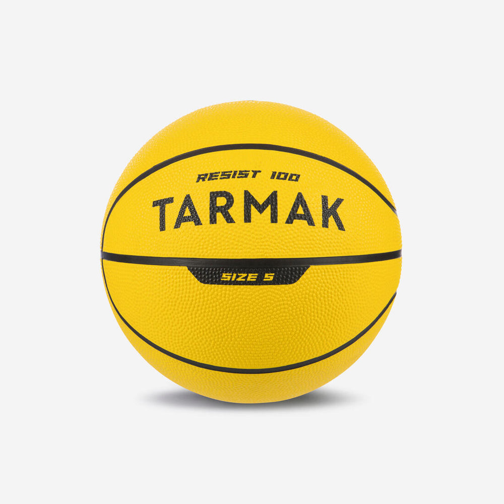 Este balón de básquetbol es de talla oficial 5, para niños y adultos. Sólido y adherente, perfecto para iniciarse en exterior en casa o en el terreno de juego.