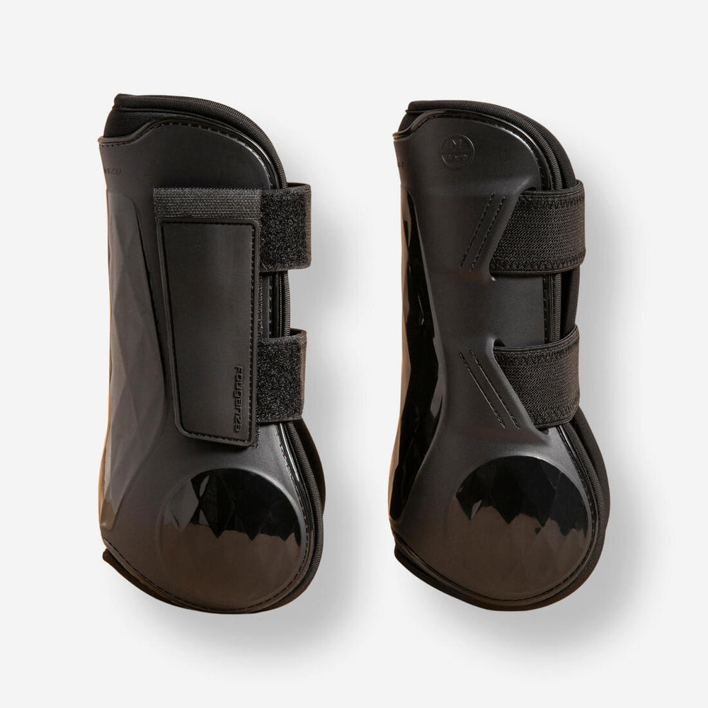 Protectores abiertos, ideales para el salto de obstáculos, creados por nuestro equipo de apasionados para proporcionar protección y comodidad al caballo.