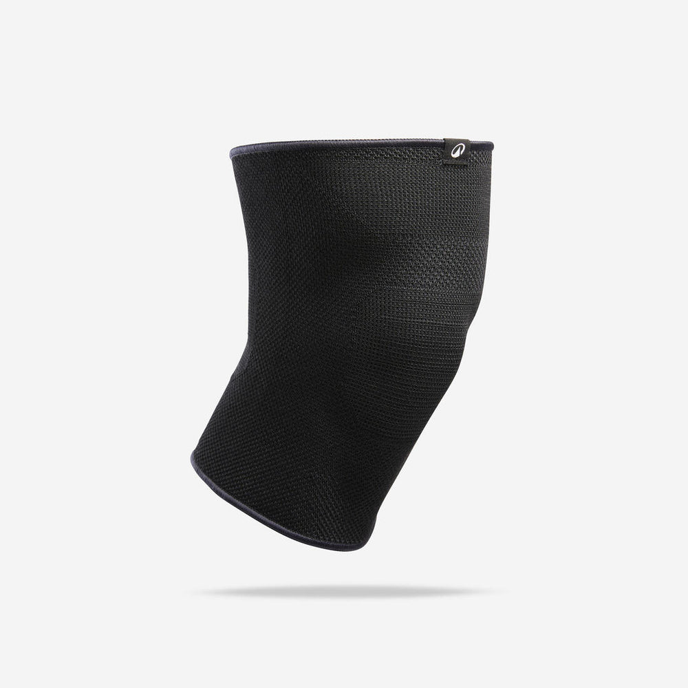 Esta rodillera ofrece una compresión en las rodillas durante deportes de impacto moderado como la marcha rápida o ejercicios que requieren esfuerzo en las rodillas, como las sentadillas o las prensas. Con su punto transpirable, especialmente en la parte posterior de la rodilla, es cómoda de llevar. Gracias a sus zonas de comodidad en la rótula y en la parte posterior de la rodilla, no interfiere con el movimiento. Se puede usar sobre la piel, salvo contraindicaciones, o sobre unas calzas.